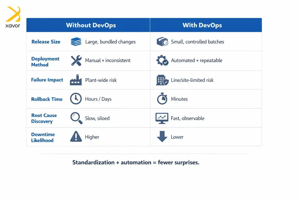 Dėl to „DevOps“ yra būtinas norint sumažinti prastovų laiką ir užtikrinti, kad gamybos padalinio technologijų ekosistema veiktų sklandžiai.